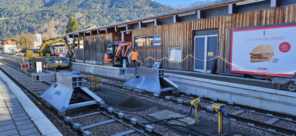 Im Juni 2025 war der erneuerte Bahnsteig schon fast fertig; der Betrieb lief weiter.